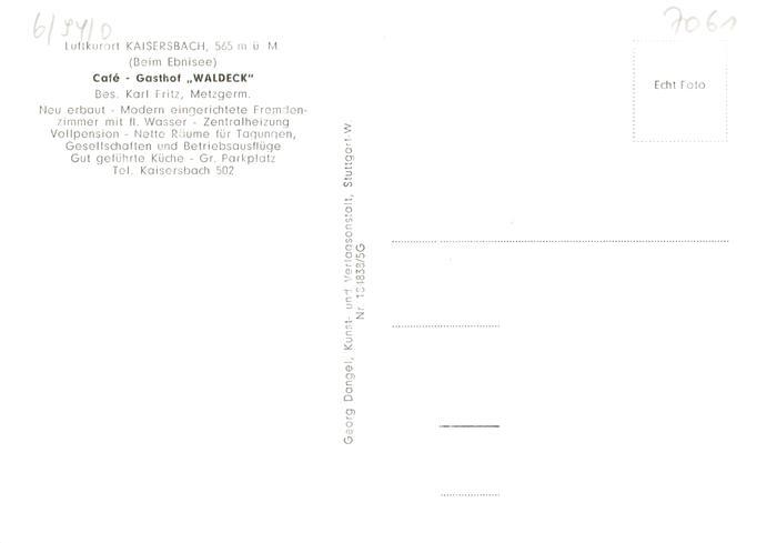 73960242 Kaisersbach Welzheim Café Gasthof Waldeck postalisch nicht gelaufen Erhaltung siehe scans [FriedD77] KatCode: 11110008119037