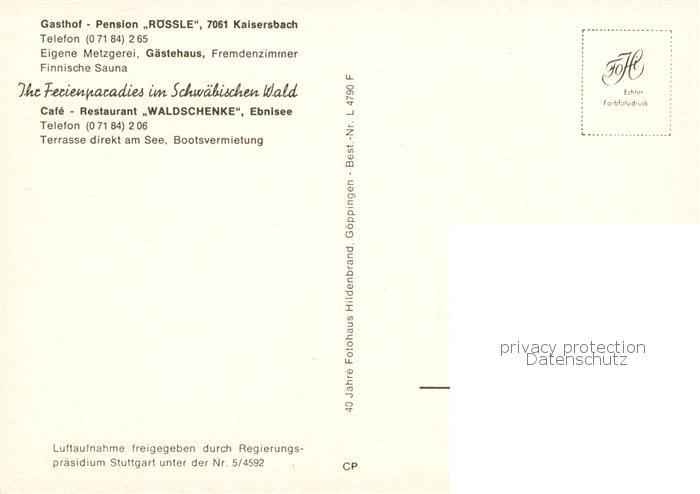 73866942 Kaisersbach Welzheim Fliegeraufnahme mit Gasthof Pension Roessle postalisch nicht gelaufen Erhaltung siehe scans [WerneD78] KatCode: 11110008119037