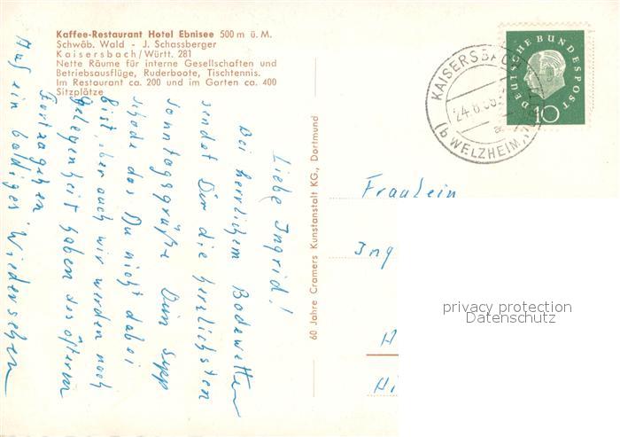 73742386 alte Postkarte Kaisersbach Welzheim Kaffee Restaurant Hotel Ebnisee postalisch gelaufen Erhaltung siehe scans [WerneD78] KatCode: 11110008119037