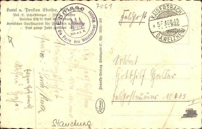 71324664 alte Postkarte Kaisersbach Welzheim Partie am Ebnisee Welzheimer Wald Feldpost postalisch gelaufen KatCode: 11110008119037