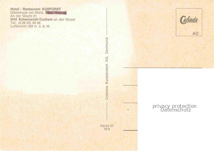 74050323 Kaisersesch Rheinland-Pfalz Hotel Kurfuerst Gastraeume Innenhof postalisch nicht gelaufen Erhaltung siehe scans [WerneD78] KatCode: 11110007135045