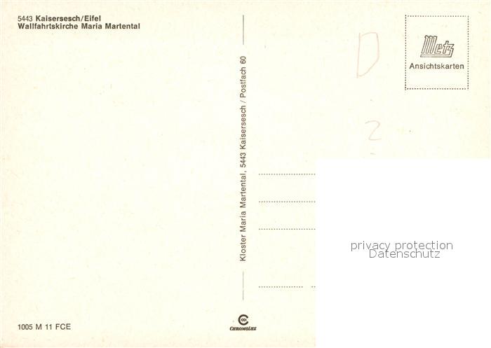 72964661 Kaisersesch Wallfahrtskirche Maria Martental in der Eifel postalisch nicht gelaufen Erhaltung siehe scans [FriedD77] KatCode: 11110007135045