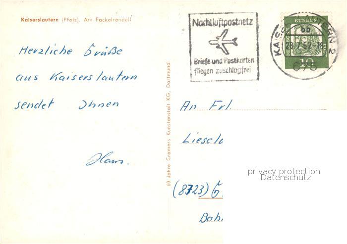 73863445 alte Postkarte Kaiserslautern Am Fackelrondell postalisch gelaufen Erhaltung siehe scans [WerneD78] KatCode: 11110007312000