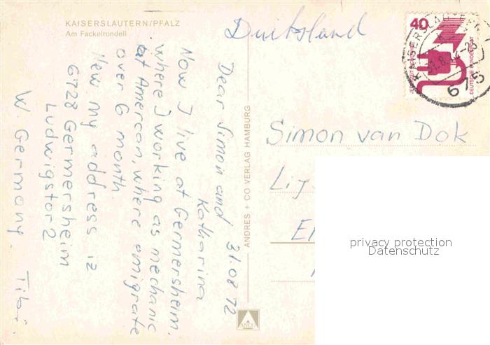 72655709 alte Postkarte Kaiserslautern Am Fackelrondell postalisch gelaufen Erhaltung siehe scans [LiesaD40] KatCode: 11110007312000
