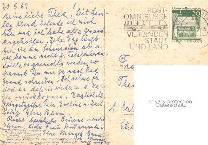 73663752 alte Postkarte Kaiserslautern Blick vom Rathaus postalisch gelaufen Erhaltung siehe scans [LiesaD40] KatCode: 11110007312000
