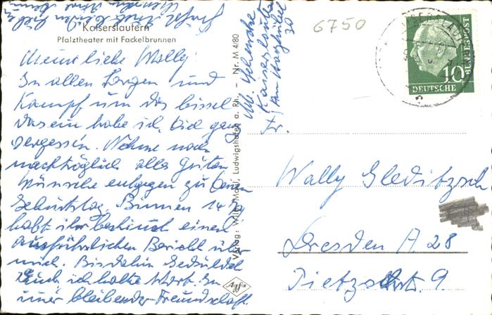 41270899 KAISERSLAUTERN CITY Pfalztheater Fackelbrunnen postalisch gelaufen gute Erhaltung Alte Ansichtskarte Postkarte alte Postkarte hz_B Katcode 11110007312000