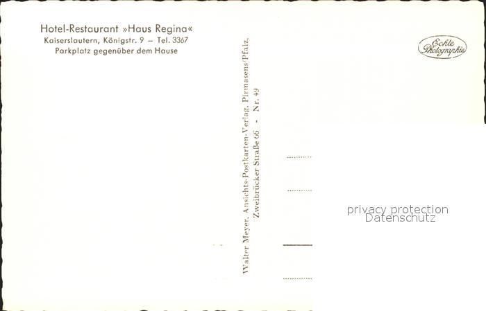 31735488 Kaiserslautern Hotel Restaurant Haus Regina postalisch nicht gelaufen Erhaltung siehe scans KatCode: 11110007312000