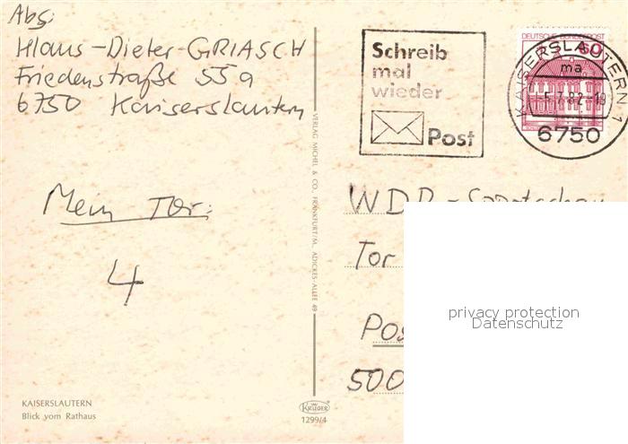 72746058 alte Postkarte Kaiserslautern Panorama Blick vom Rathaus postalisch gelaufen Erhaltung siehe scans [FriedD77] KatCode: 11110007312000