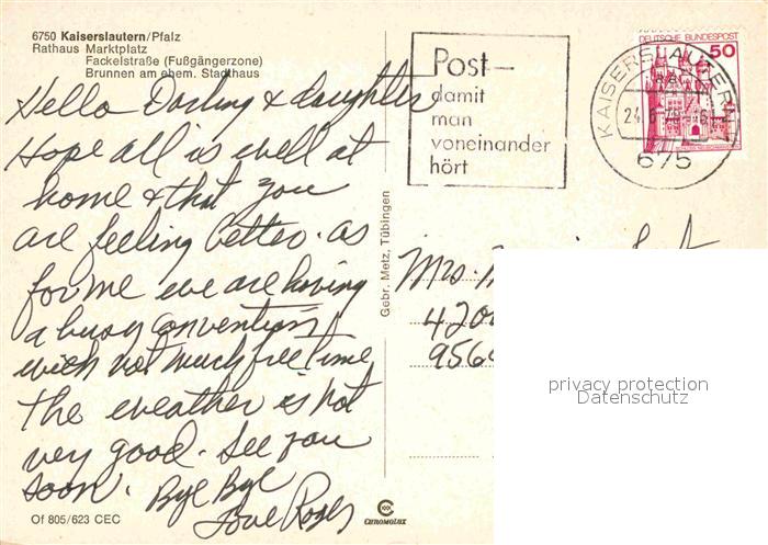 72725490 alte Postkarte Kaiserslautern Rathaus Hochhaus Marktplatz Fackelstrasse Fussgaengerzone Brunnen postalisch gelaufen Erhaltung siehe scans [FriedD77] KatCode: 11110007312000
