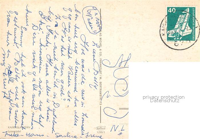 72933646 alte Postkarte Kaiserslautern Spinnraedel postalisch gelaufen Erhaltung siehe scans [WerneD78] KatCode: 11110007312000