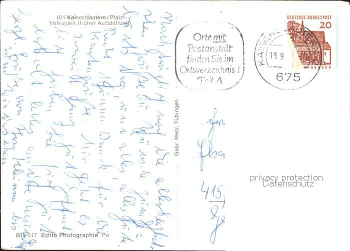 71894293 alte Postkarte Kaiserslautern Volkspark postalisch gelaufen Erhaltung siehe scans KatCode: 11110007312000