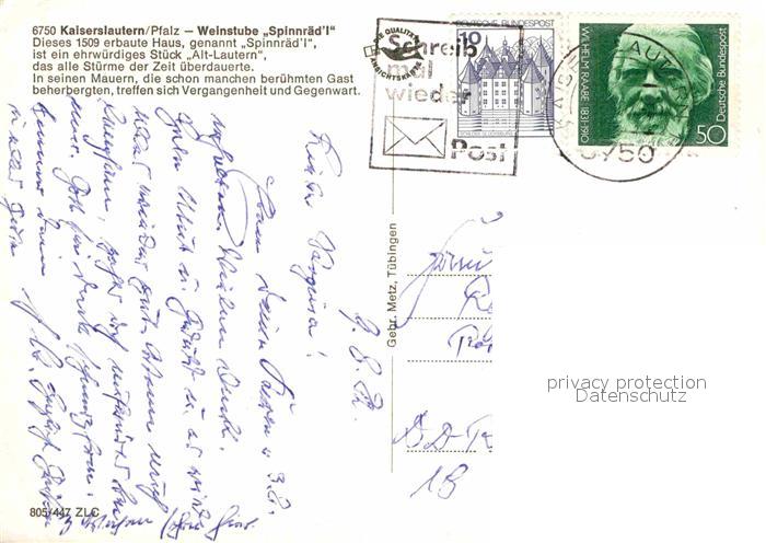 72846102 alte Postkarte Kaiserslautern Weinstube Spinnraedl postalisch gelaufen Erhaltung siehe scans [LiesaD40] KatCode: 11110007312000