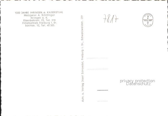 11720931 Kaiserstuhl AG Metzgerei A. Schillinger postalisch nicht gelaufen Erhaltung siehe scans KatCode: 11470010055492
