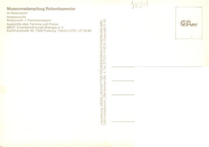 73929044 Kaiserstuhl Region Museumsdampfzug Rebenbummler Innenansicht postalisch nicht gelaufen Erhaltung siehe scans [WerneD78] KatCode: 11110008315059