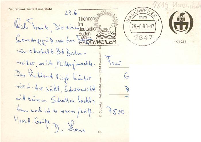73929100 alte Postkarte Kaiserstuhl Region Panoramkarte postalisch gelaufen Erhaltung siehe scans [WerneD78] KatCode: 11110008315059