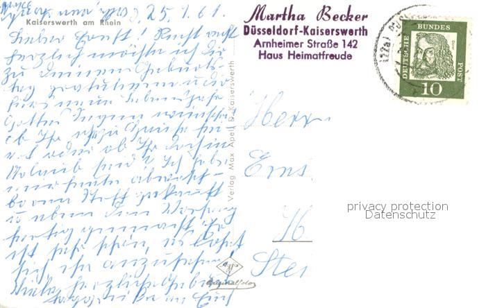 73666394 alte Postkarte Kaiserswerth Fliegeraufnahme postalisch gelaufen Erhaltung siehe scans [WerneD78] KatCode: 11110005111000