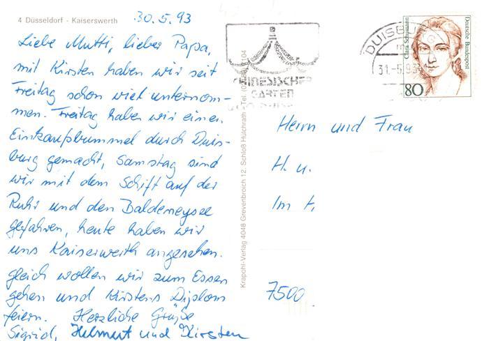 73943937 alte Postkarte Kaiserswerth Fliegeraufnahme postalisch gelaufen Erhaltung siehe scans [FriedD77] KatCode: 11110005111000
