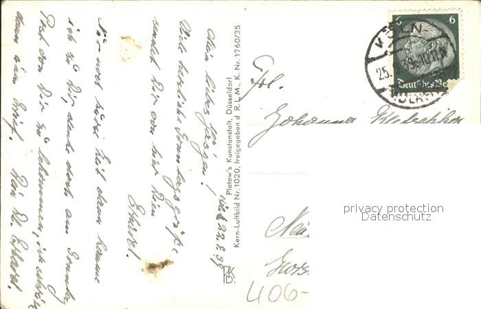 31705931 alte Postkarte Kaiserswerth Rhein Binnenschiffahrt Fliegeraufnahme postalisch gelaufen Erhaltung siehe scans KatCode: 11110005111000