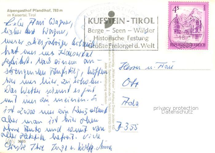 73049295 alte Postkarte Kaisertal Alpengasthof Pfandlhof postalisch gelaufen Erhaltung siehe scans [KathaD81] KatCode: 11390335070513