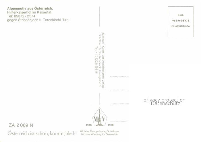 72626687 Kaisertal Bergbauernhof Hinterkaiserhof Stripsenjoch Totenkirchl Alpen postalisch nicht gelaufen Erhaltung siehe scans [FriedD77] KatCode: 11390335070513