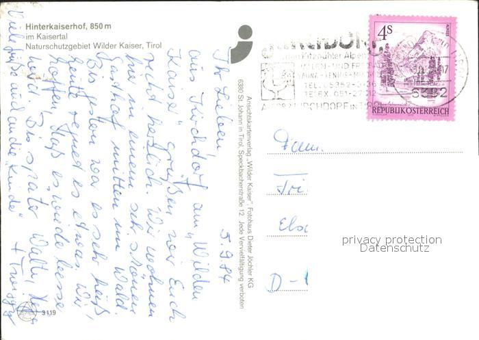 72288193 alte Postkarte Kaisertal Hinterkaiserhof postalisch gelaufen Erhaltung siehe scans KatCode: 11390335070513