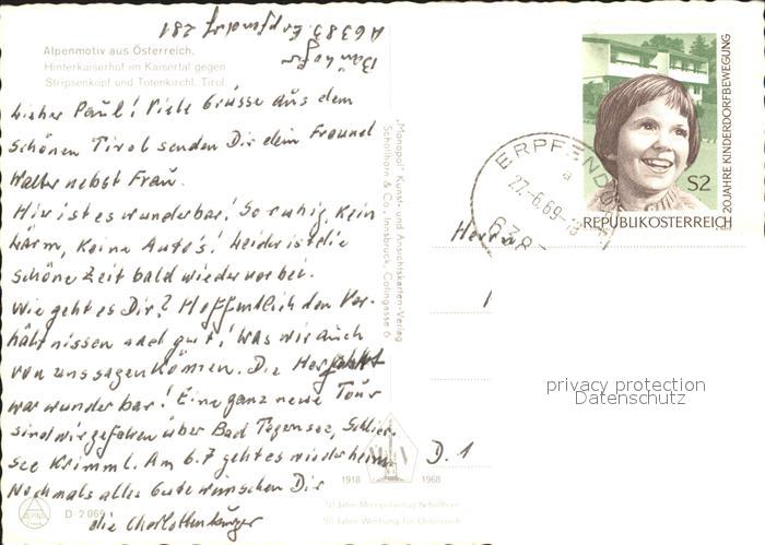 71866383 alte Postkarte Kaisertal Hinterkaiserhof Bergbauernhof Stripsenkopf Totenkirchl postalisch gelaufen Erhaltung siehe scans KatCode: 11390335070513