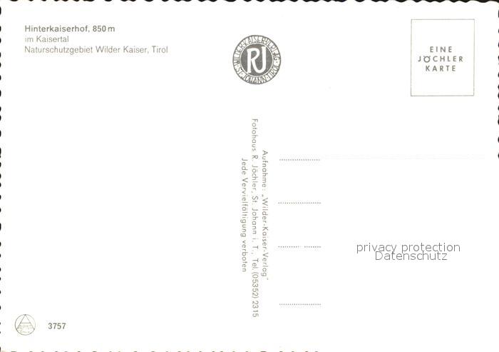72500767 Kaisertal Hinterkaiserhof Naturschutzgebiet Wilder Kaiser postalisch nicht gelaufen Erhaltung siehe scans KatCode: 11390335070513
