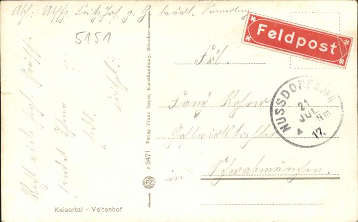 11299562 Kaisertal Veitenhof Kaisertal Tiroler Kaisergebirge Feldpost KatCode 11390335070513