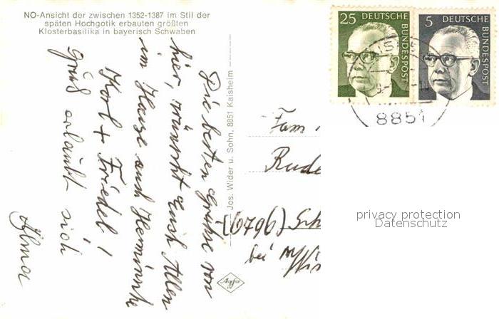 72919845 alte Postkarte Kaisheim Ehem Kirche der Zisterzienser postalisch gelaufen Erhaltung siehe scans [WerneD78] KatCode: 11110009779169