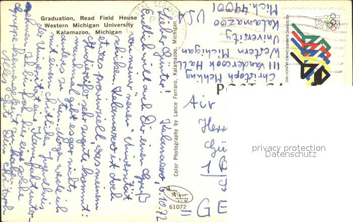 72167360 old postcard Kalamazoo Graduation Read Field House Western Michigan University postalisch gelaufen Erhaltung siehe scans KatCode: 14140240000000
