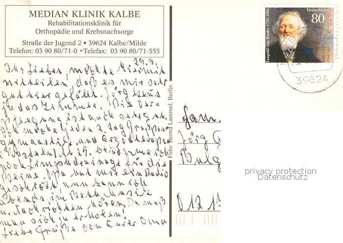 72931110 alte Postkarte Kalbe Milde Median Klinik Kalbe postalisch gelaufen Erhaltung siehe scans [KathaD81] KatCode: 11110015081240