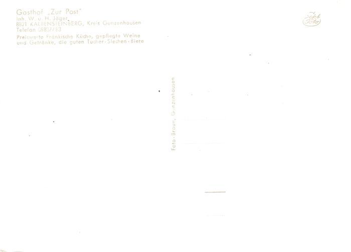 73876757 Kalbensteinberg Panorama Gasthof Zur Post Gaststube postalisch nicht gelaufen Erhaltung siehe scans [FriedD77] KatCode: 11110009577111