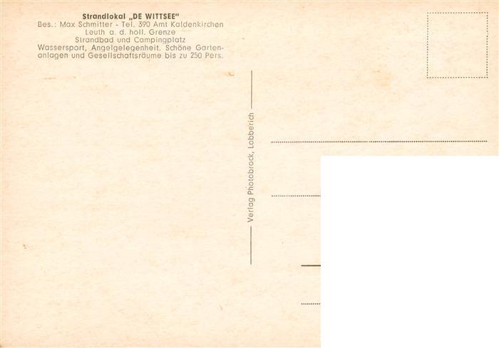 73892430 Kaldenkirchen Rheinland Strandlokal De Wittsee Campingplatz postalisch nicht gelaufen Erhaltung siehe scans [FriedD77] KatCode: 11110005166016