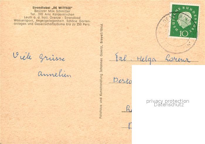 72986497 alte Postkarte Kaldenkirchen Rheinland Strandlokal De Wittsee postalisch gelaufen Erhaltung siehe scans [WerneD78] KatCode: 11110005166016