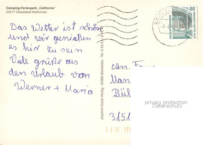 73785071 alte Postkarte Kalifornien Ostseebad Fliegeraufnahme Camping-Ferienpark California postalisch gelaufen Erhaltung siehe scans [LiesaD40] KatCode: 11110001057073