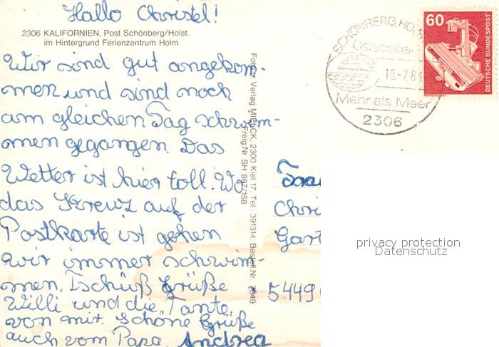 73204201 alte Postkarte Kalifornien Ostseebad Fliegeraufnahme Ferienzentrum Holm postalisch gelaufen Erhaltung siehe scans [NatalD47] KatCode: 11110001057073