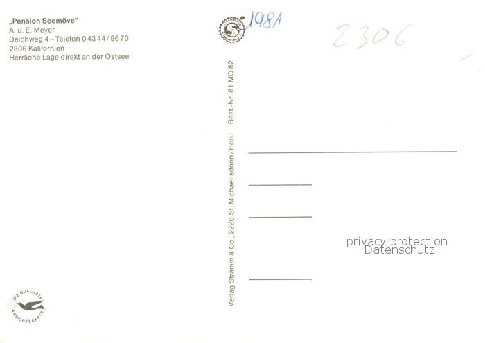 73642745 Kalifornien Ostseebad Pension Seemoeve Gastraum Terrasse postalisch nicht gelaufen Erhaltung siehe scans [FriedD77] KatCode: 11110001057073
