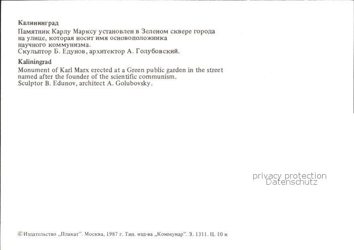 Kaliningrad Monument of Karl Marx erected at a Green public garden postalisch nicht gelaufen Erhaltung siehe scans