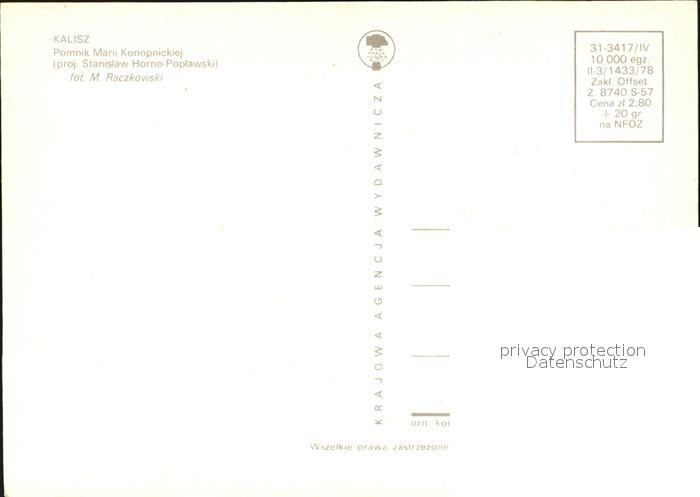 Kalisz Pomnik Marii Konopnickiej Denkmal postalisch nicht gelaufen Erhaltung siehe scans