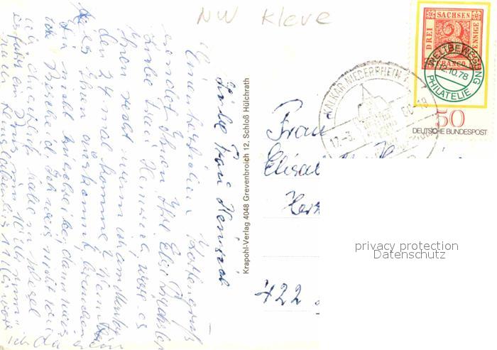 72907407 alte Postkarte Kalkar Niederrhein RathausKirche Park Turm postalisch gelaufen Erhaltung siehe scans [AndreD76] KatCode: 11110005154024