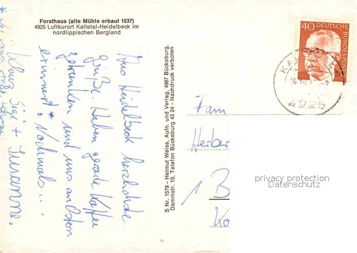 72784772 alte Postkarte Kalletal Forsthaus Alte Muehle postalisch gelaufen Erhaltung siehe scans [LiesaD40] KatCode: 11110005766036