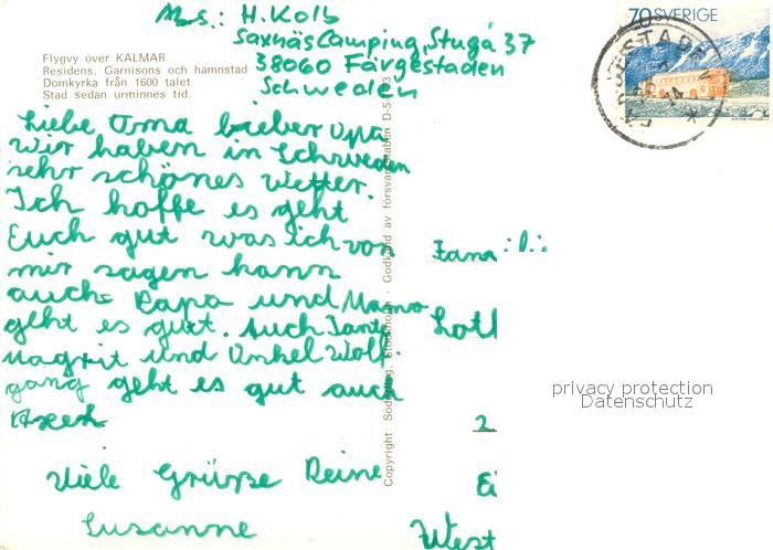 old postcard Kalmar Sweden Fliegeraufnahme Gesamtansicht postalisch gelaufen Erhaltung siehe scans [LiesaD40]