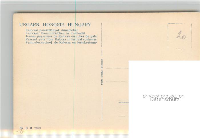 Kalocsa Bauernmaedchen in Festtracht postalisch nicht gelaufen Erhaltung siehe scans [LiesaD40]