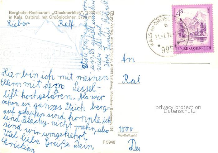 73089215 alte Postkarte Kals Grossglockner Bergbahn-Restaurant Glocknerblick postalisch gelaufen Erhaltung siehe scans [NatalD47] KatCode: 11390333070712