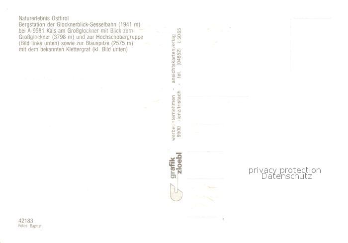 73266374 Kals Grossglockner Bergstation Glocknerblick postalisch nicht gelaufen Erhaltung siehe scans [LiesaD40] KatCode: 11390333070712