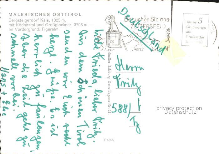 72447193 alte Postkarte Kals Grossglockner Bergsteigerdorf Figeralm Koednitztal Grossglockner postalisch gelaufen Erhaltung siehe scans KatCode: 11390333070712