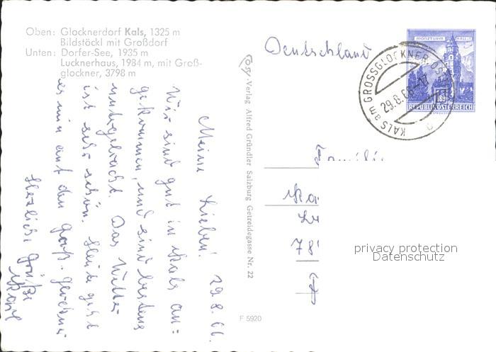 72233345 alte Postkarte Kals Grossglockner Dorfer-See Lucknerhuette postalisch gelaufen Erhaltung siehe scans KatCode: 11390333070712