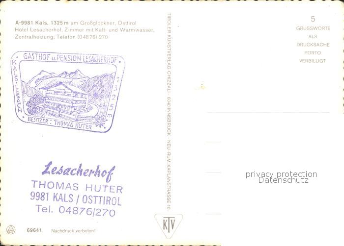 42923874 Kals Grossglockner Hotel Lesacherhof postalisch nicht gelaufen Erhaltung siehe scans [WerneD48] KatCode: 11390333070712