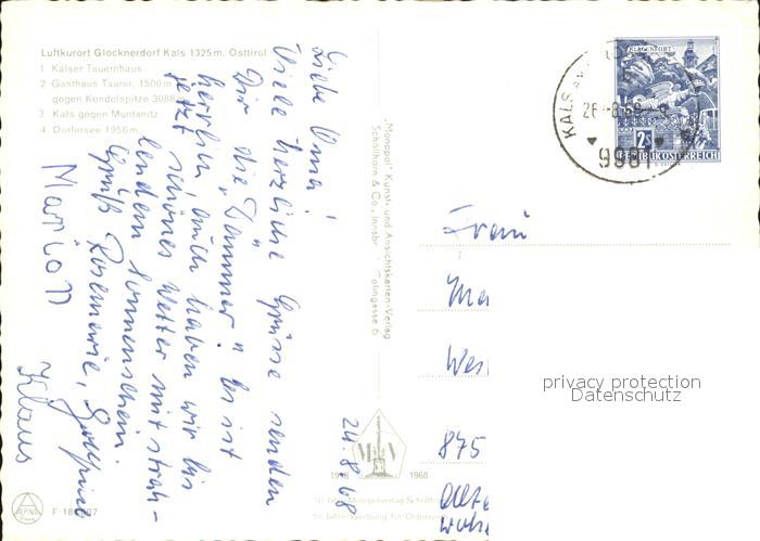 72486323 alte Postkarte Kals Grossglockner Kaiser Tauernhaus Gasthaus Tauer Dorfstrasse postalisch gelaufen Erhaltung siehe scans KatCode: 11390333070712