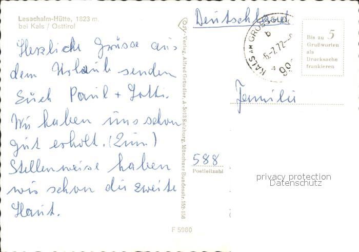 72448008 alte Postkarte Kals Grossglockner Lesachalm Huette Gloedis Hohe Tauern postalisch gelaufen Erhaltung siehe scans KatCode: 11390333070712